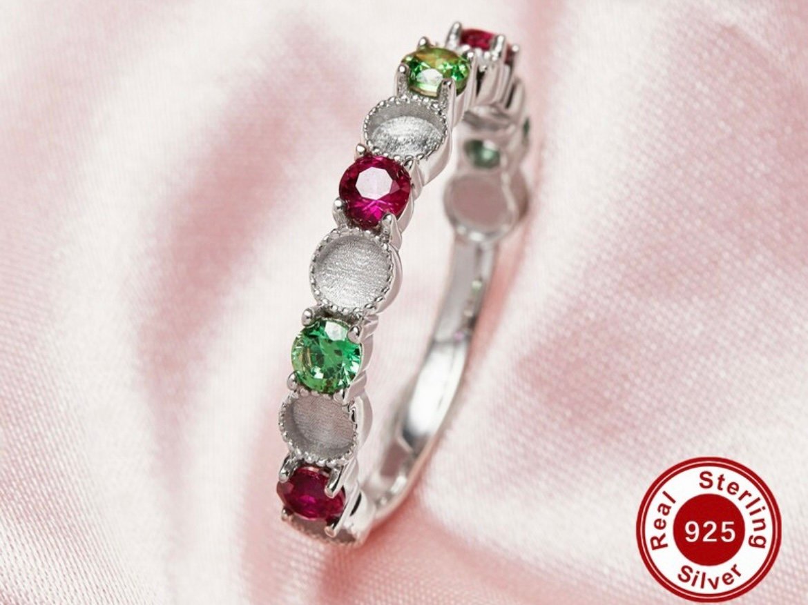 Sterling Silver Birthstone Band is available in Silver, Rose Gold, or Yellow Gold.