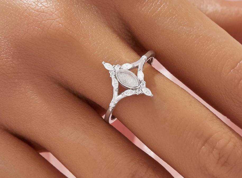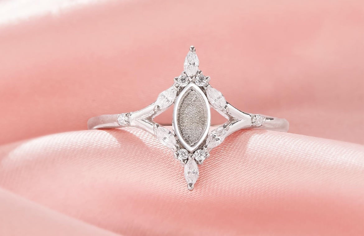 The center Marquise stone can be made as breastmilk jewelry, cremation keepsake, or resin only.
