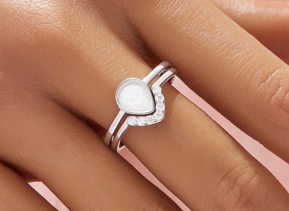 6x8mm Bezel Teardrop Breastmilk Ring can be made as breastmilk jewelry, cremation keepsake, or resin only.