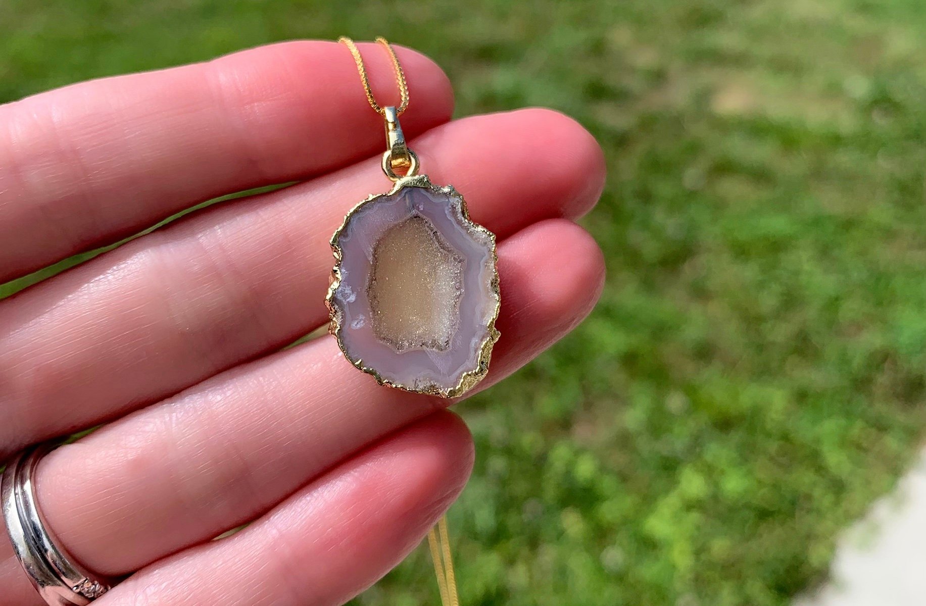 Agate Stone Breastmilk Necklace comes in Silver or Gold lined. The center stone can be made as breastmilk jewelry, cremation keepsake, or resin only.