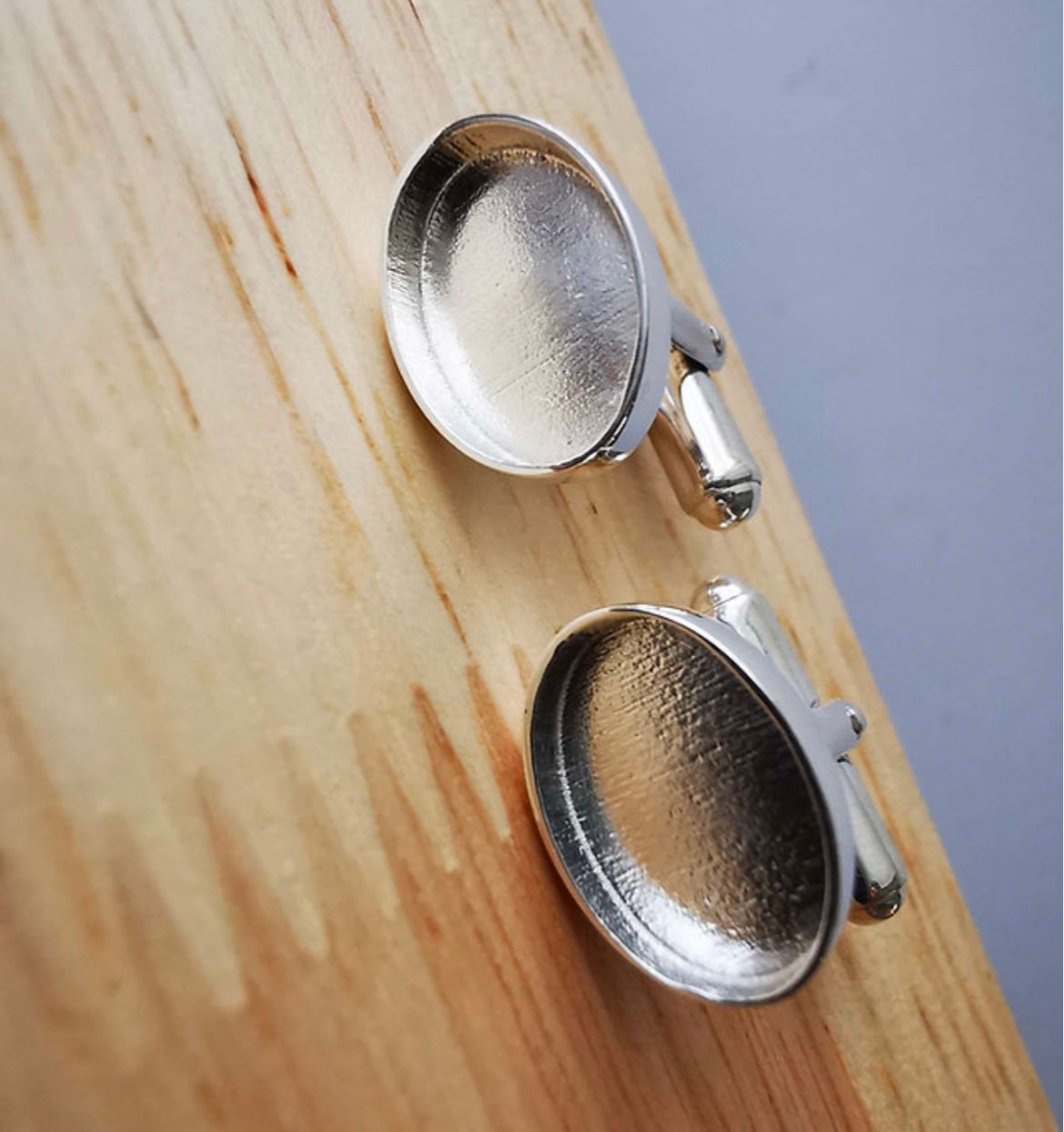 High quality solid Sterling Silver polished cufflink ready to be filled with your precious inclusions.
