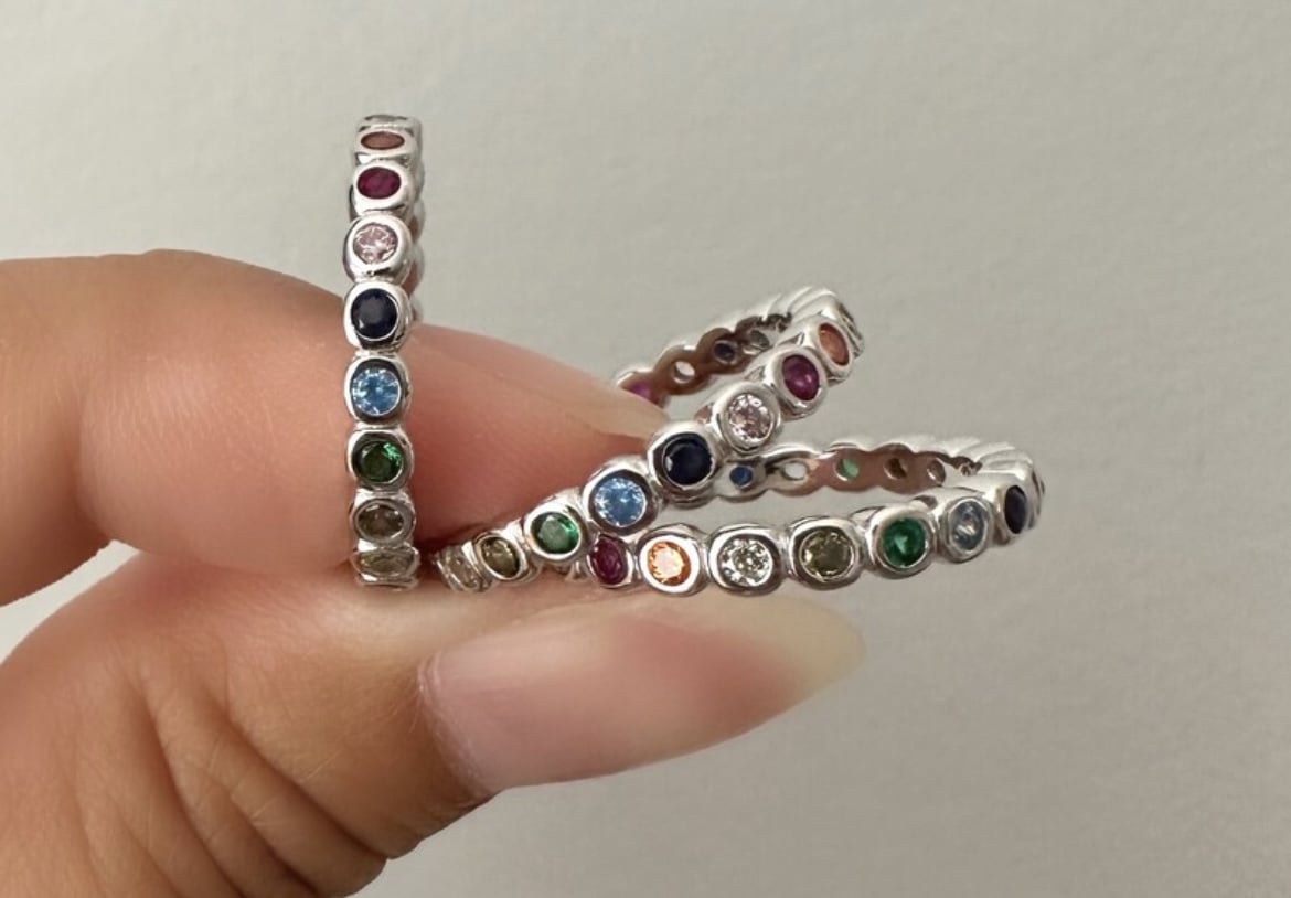 Beautiful Rainbow Band is made from Solid 925 Sterling Silver. The most perfect accent to represent your rainbow baby! Stack’s beautiful or can be worn alone.