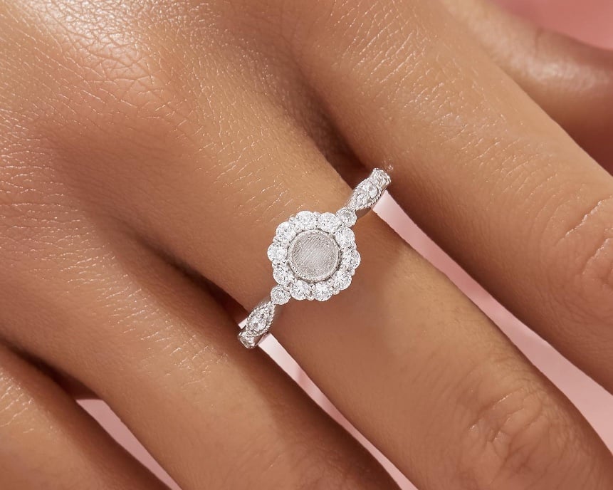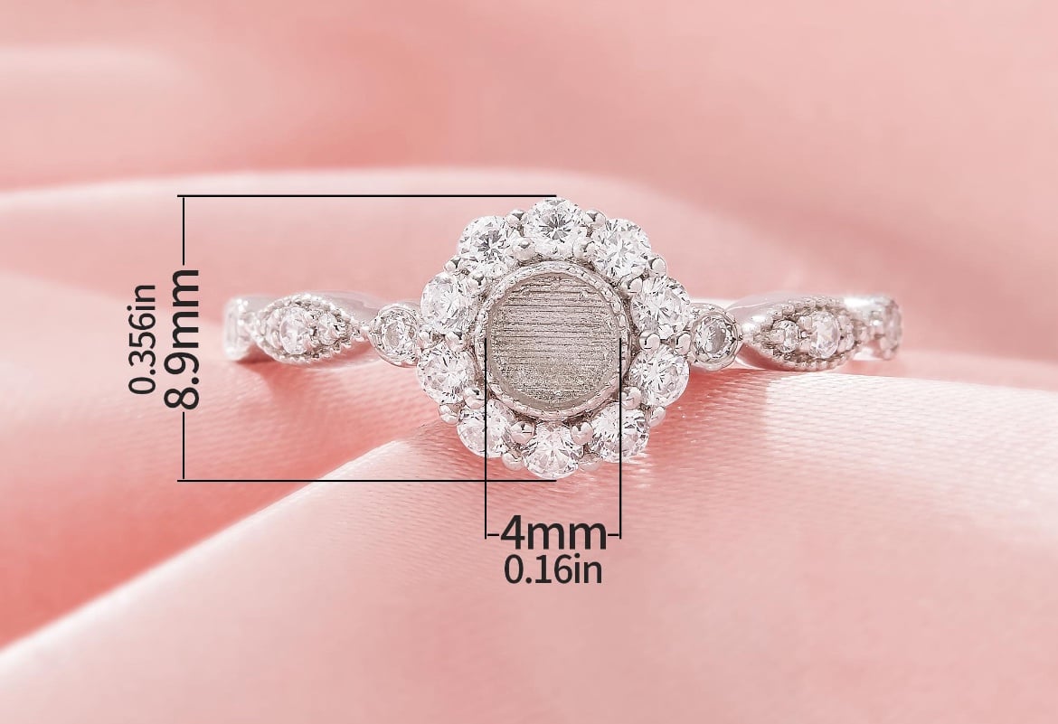 4mm Round Halo Sunflower Ring Setting.